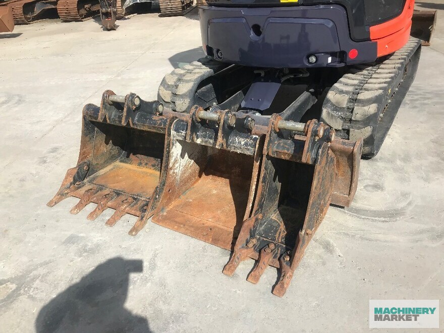 Amount of previous owners : 1 , Undercarriage : 60% , Gross weight : 12,346 lbs , Emission level : Stage IV / Tier IV final , Track width : 17.7 inches , Original color : Original , Engine manufacturer : Kubota , Production country : Japan , Accessories : Auto / hydraulic quick coupler , Hammer hydr. function , Additional hydraulics , Rubber tracks , Battery disconnector , Rotating beacon , Standard digging bucket , Cable bucket , Ditching/grading bucket , Hammer protection circuit , Attachments : 4 buckets